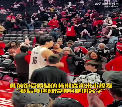 积极融入!开拓者主场球迷呼喊杨瀚森名字小杨双手合十表示感谢