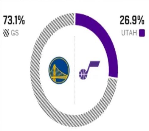 这是两队本赛季的第三次交手,前两次交锋均以勇士大胜告终,优势非常明显。赛前,美媒ESPN对本场比赛进行了胜率预测,勇士队胜率高达73.1%,一骑绝尘,爵士队胜率则仅有26.9% ,还是不被外界看好。